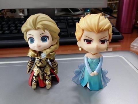 擁有一雙巧手,你就可以對你的手辦“為所欲為”了。手辦大部分都是人型手辦。一些手辦會擁有復(fù)數(shù)的零件,可以進(jìn)行任意的組合。除了配套的零件之外,其他的一些手辦零件也可以用來互換,然后你就會打開新世界的大門。比如《冰雪奇緣》中的艾莎和閃閃(吉爾伽美什)的服裝互換,看起來毫無違和感。