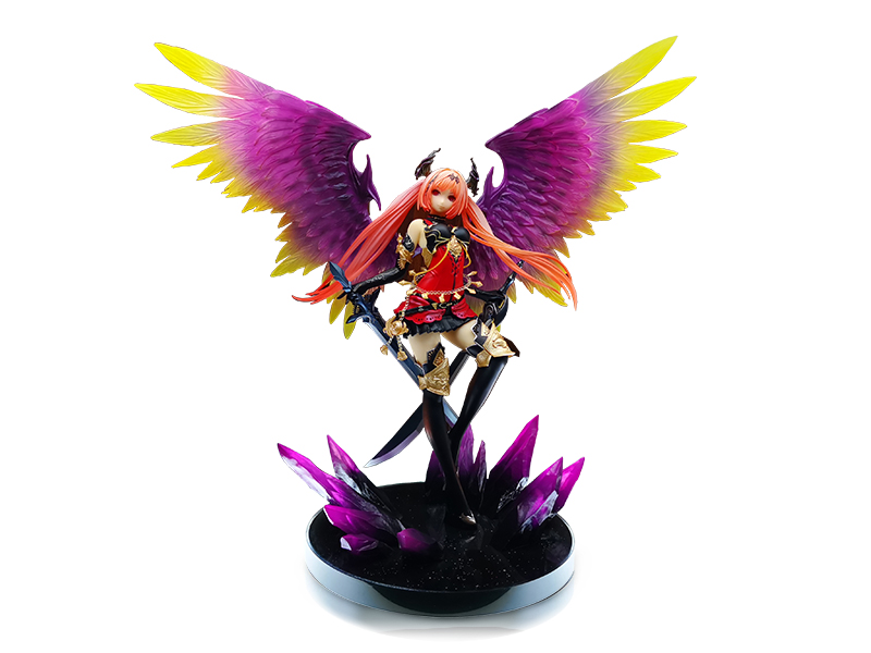 然后是大家最關(guān)注的面相了,沒(méi)有讓我們失望,因?yàn)榇丝盍咙c(diǎn)太多,奧利維亞背后張開(kāi)那紫金色的天使翅膀,層次分明、精美極致。奧利維亞血紅的的雙眼與可愛(ài)的角對(duì)比之下極具美態(tài),藝術(shù)品之稱名副其實(shí)。